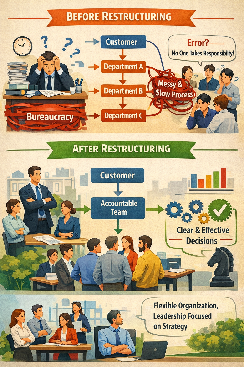 - Tái cấu trúc vận hành không phải để siết chặt, mà để giảm ma sát trong hệ thống.