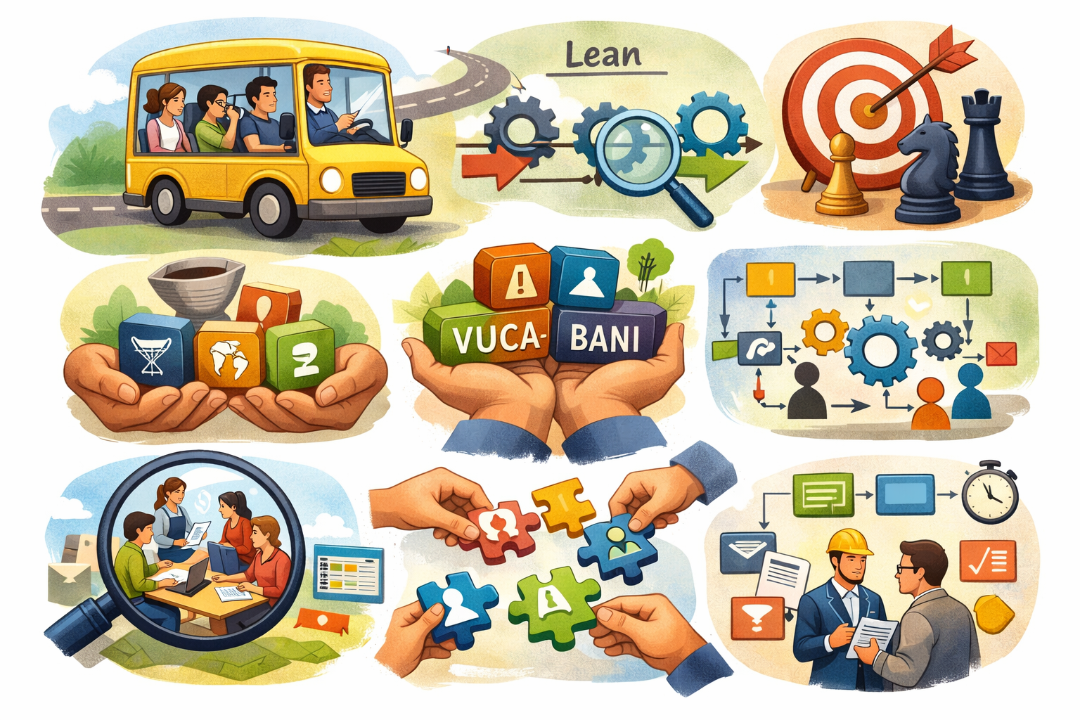Jim Collins nhấn mạnh: trước khi quyết định đi đâu, hãy quyết định ai sẽ cùng đi và họ ngồi ở đâu trên “chiếc xe” của tổ chức. Lean nhìn vấn đề từ góc độ dòng giá trị: con người chỉ phát huy khi vai trò của họ gắn với một giá trị rõ ràng trong chuỗi vận hành. OGSM đặt câu hỏi ngược lại: nếu mục tiêu và chiến lược đã rõ, năng lực nào là bắt buộc ở từng điểm chạm? Trong bối cảnh VUCA và BANI, nơi biến động và bất định trở thành trạng thái thường trực, việc “đặt đúng người” quan trọng hơn “tìm người giỏi nhất”. BPMN bổ sung một góc nhìn rất thực tế: vai trò không tồn tại trên sơ đồ tổ chức, mà tồn tại trong từng bước quy trình cụ thể. Khi quy trình mơ hồ, mọi đánh giá con người đều trở nên cảm tính.