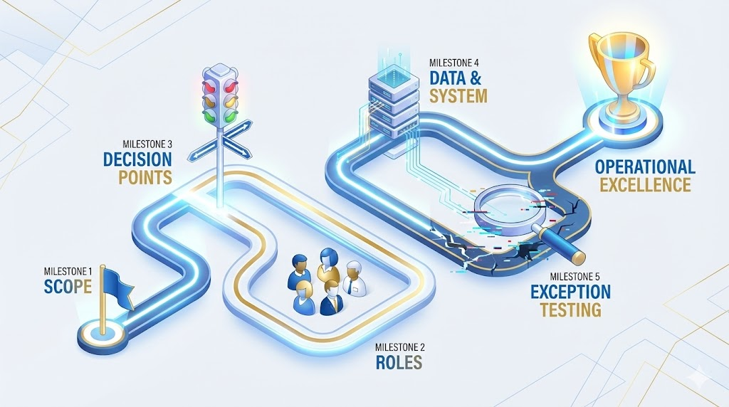 Thiết kế quy trình theo chuẩn BPMN cho doanh nghiệp thương mại không bắt đầu từ phần mềm, mà bắt đầu từ tư duy. Thực tế triển khai cho thấy một lộ trình năm bước mang lại hiệu quả cao.
