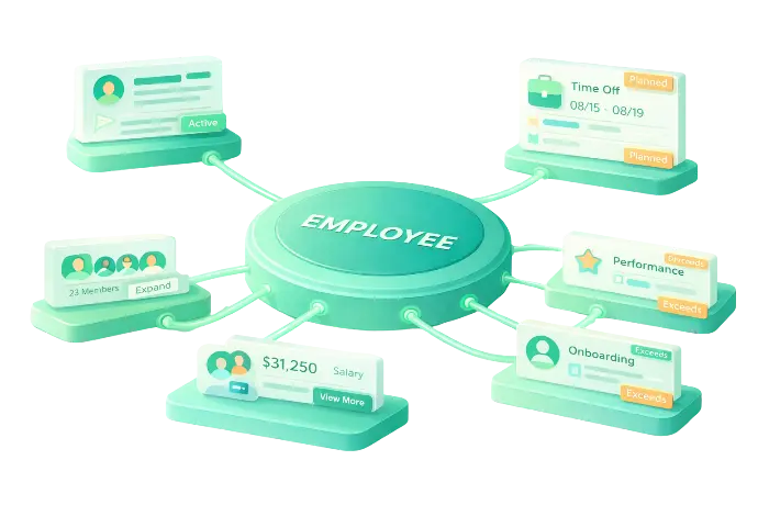 - Cung cấp trạng thái nhân sự hiện tại cho payroll và attendance